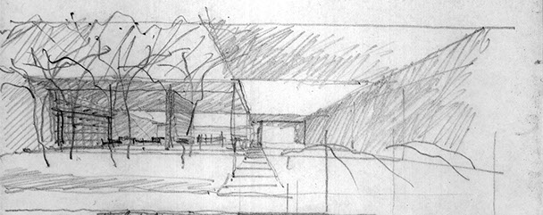 Urban living in a walkable city still is the exemption from the paradigm of freestanding objects in a never ending suburbia. Linked to lines of thought about the hortus conclusus in the nineties this claim in an urban commercial zone contains a garden to dwell rather than a house. A simple temenos enclosure from exposed concrete masonry units demarcates the claim of gravel, orchards and pools. Horizontal slabs balanced on steel posts shelter like umbrellas. Only later might one recognize the glass making a rich space flow through pavilions in this internalized garden.