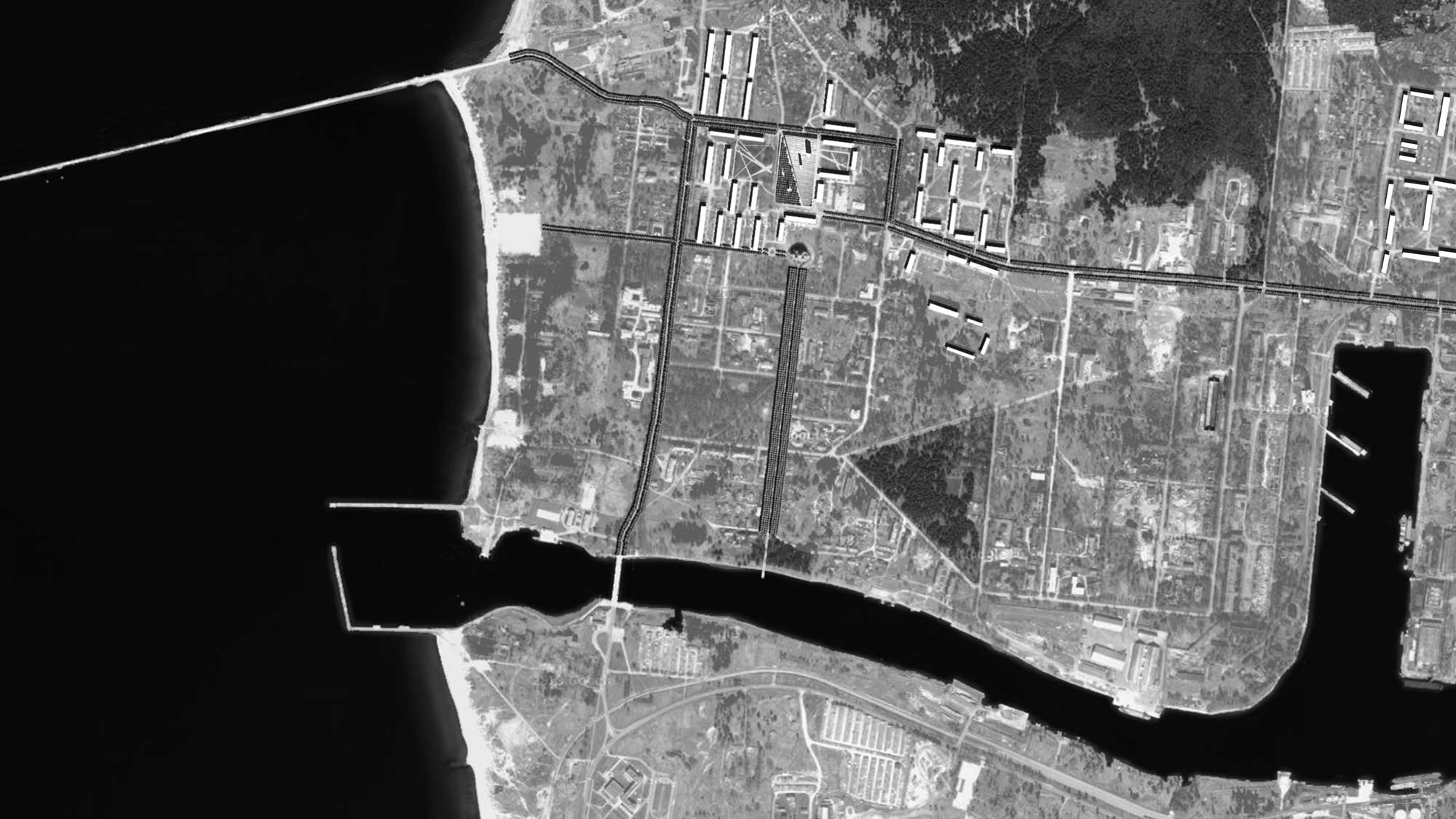 This international competition finalist for a forum in the ghost town of a former cold war Soviet secret naval base on the Baltic Sea coast of Latvia is a contextual project. It makes a place providing an urban oasis with an urban orchard, an ascending place of a stair square above the descending space of a grand hypostyle, and as an urban oasis defies typical contemporary obsessions with dropped object-making.