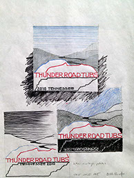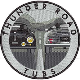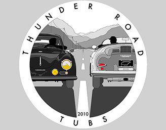 The Thunder Road Tubs are a Tennessee hot rod group founded in 2010. These aficionados are all about essential early Porsche cars. An epic 1958 filme noire titled Thunder Road, starring Robert Mitchum, sets an epitaph to a local crime drama during the days of moonshine runs with outlaw cars, serving as a style palimpsest for the group's car purism. Hansjörg Göritz, who had joined this group early, had the pleasurable honor of a thorough graphic design to provide the matching logo badge capturing this cultural context.