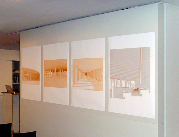 In January 2001 Göritz won the international competition for the Liechtenstein Parliament in Vaduz. In 2008 the buildings were dedicated. The ensemble is composed of high pitched High House for the senate, a flanking Long House, and a square; its finalization is not part of this exhibitions; photographs are were excluded. Rather, it reveals a holistic work and design process with 600 original hand drawings. Chronologically, it makes one comprehend the entire development, from an initial approach to the competition project to working details.
