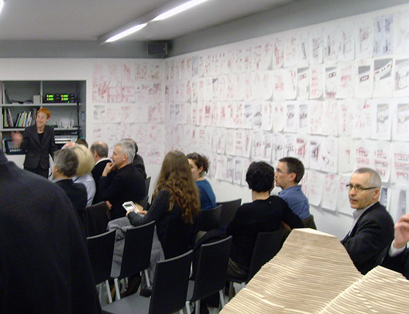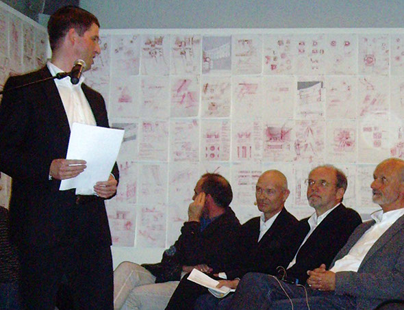 The exhibition was introduced with statements and a panel discussion on the topic Material - How much Hold do Humans Need? Dialog partners were architects David Cook, Jórunn Ragnarsdóttir and psychologist Alexander Müller, moderated by journalist Friedrich Dassler of XIA.